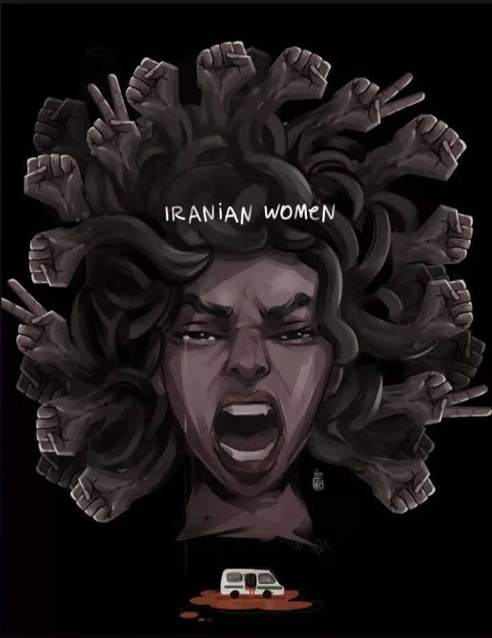 Woman-Life-Freedom revolution art by an anonymous artist in Iran.