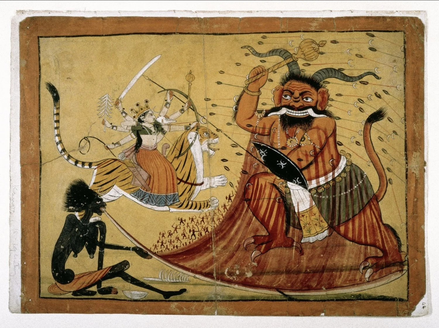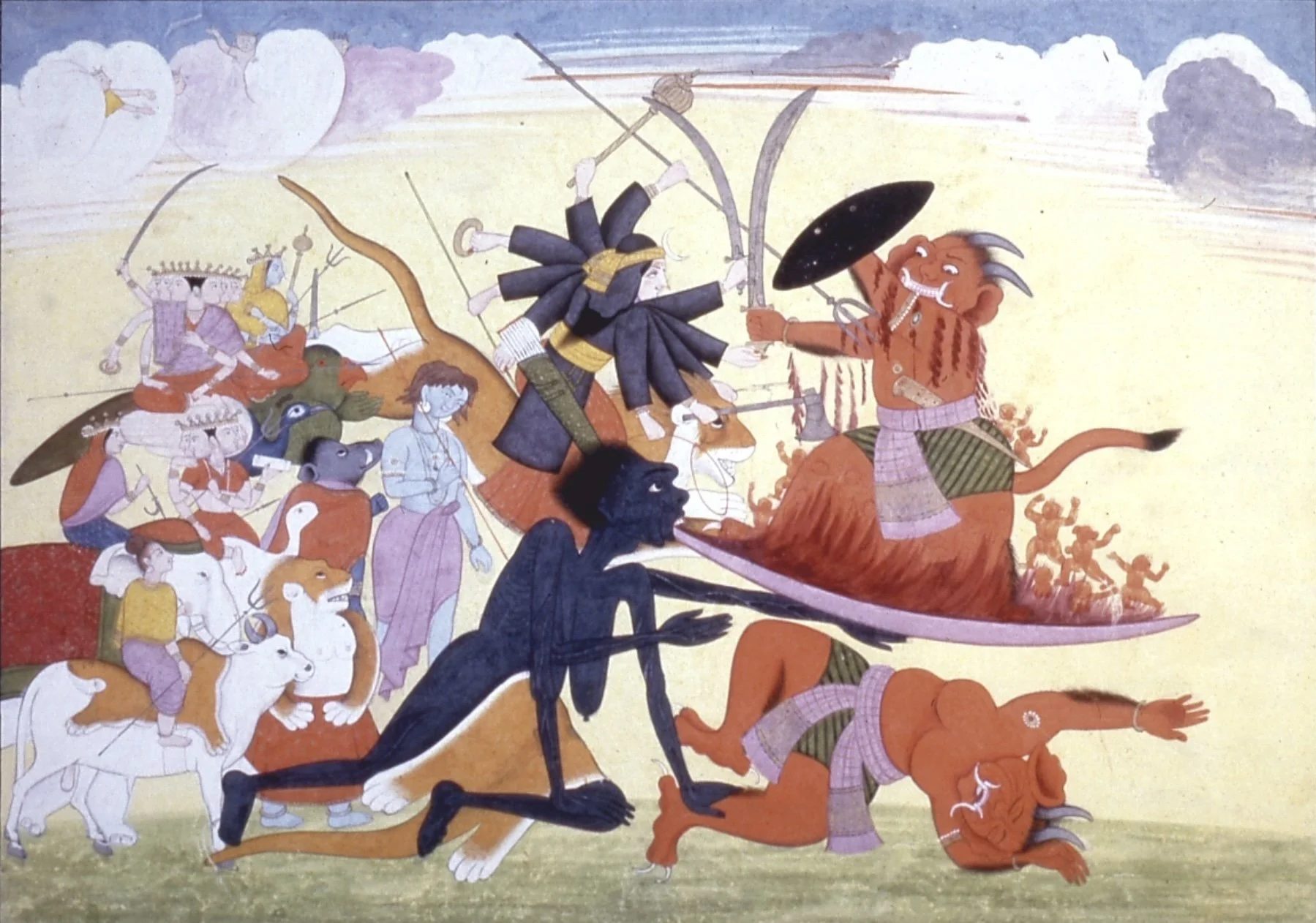 The crone goddess Kali eats the Asura demons with her lolling tongue